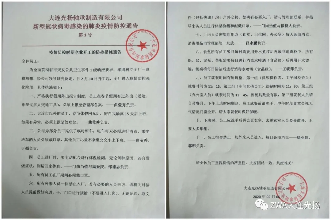 這次疫情,如同一場(chǎng)無聲的戰(zhàn)爭(zhēng),在這次戰(zhàn)斗中,大連光揚(yáng)軸承制造有限公司的領(lǐng)導(dǎo)班子不等不靠、先知先覺迅速做出抗疫響應(yīng):