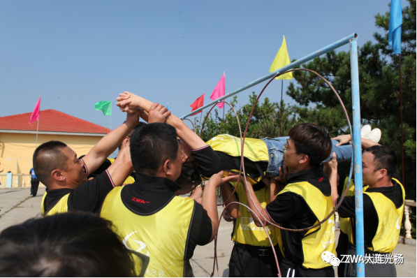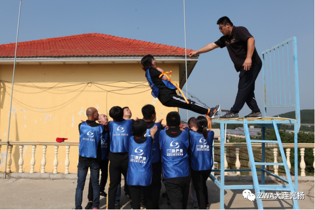 信任背摔,要求全組隊員相互協作、相互信任,這與實際工作一樣,只有相信你的伙伴,精誠協作,才能取得成功!