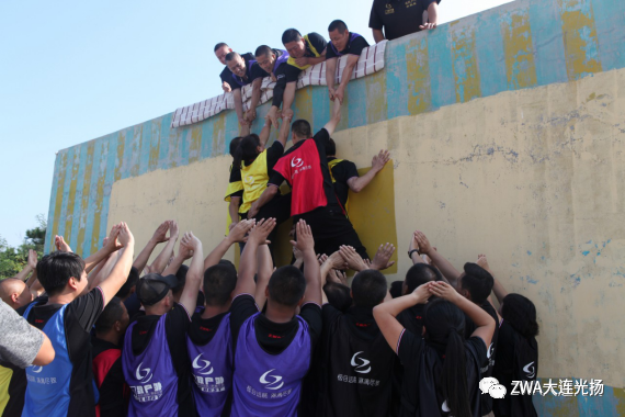 勝利墻,是拓展活動的畢業項目,4.2米高的一面墻,不借用任何外力,徒手翻越,是怎樣的勇氣和擔當!